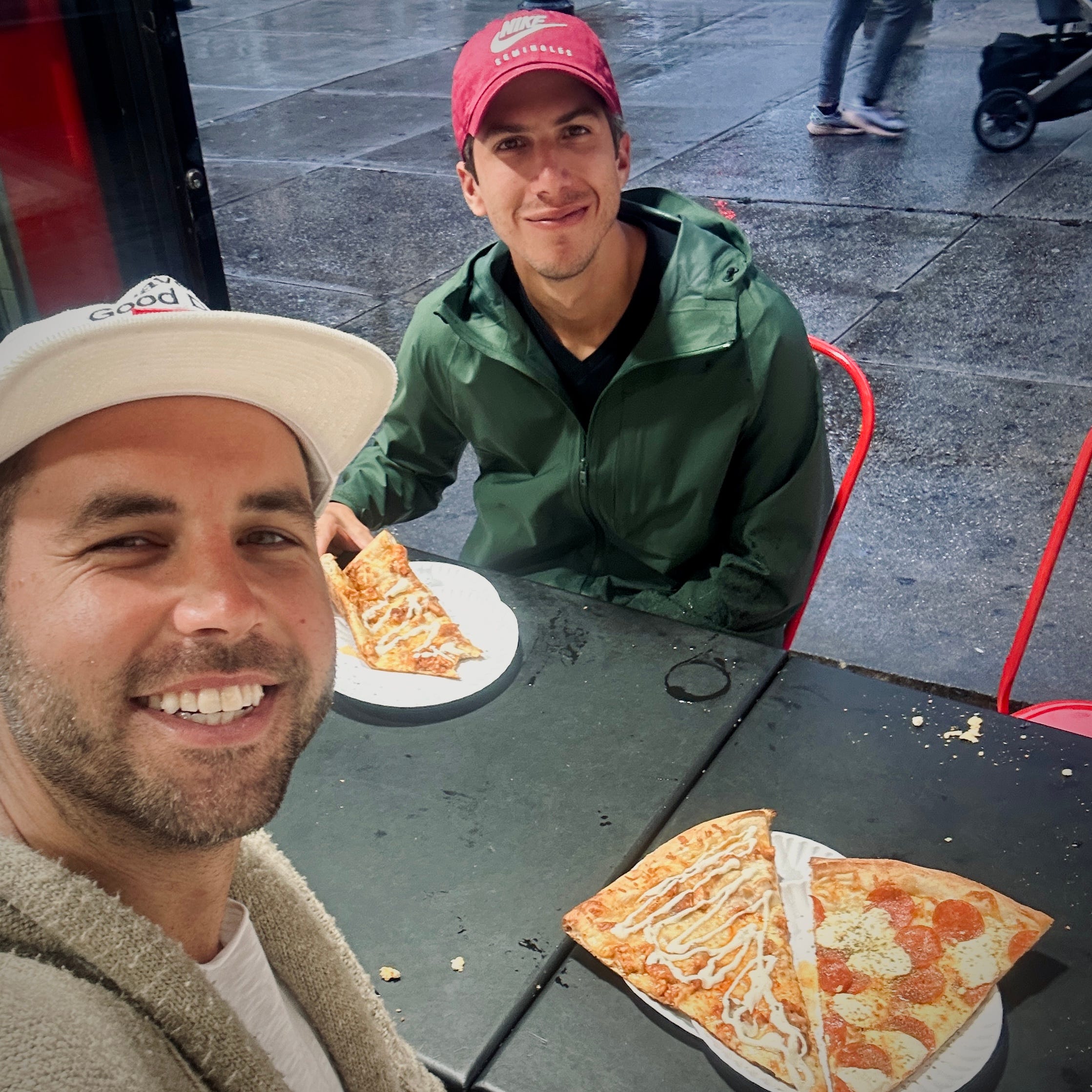 On my way back to Barcelona, I had a long layover in New Jersey and got to enjoy a slice of pizza with my dear friend Xavi.